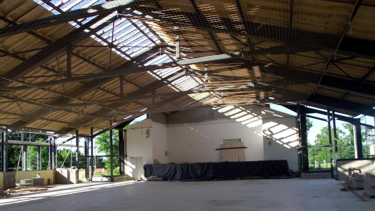 laissant apparaître la structure de l'extérieur, avant de procéder à la transformation de la charpente en cause.